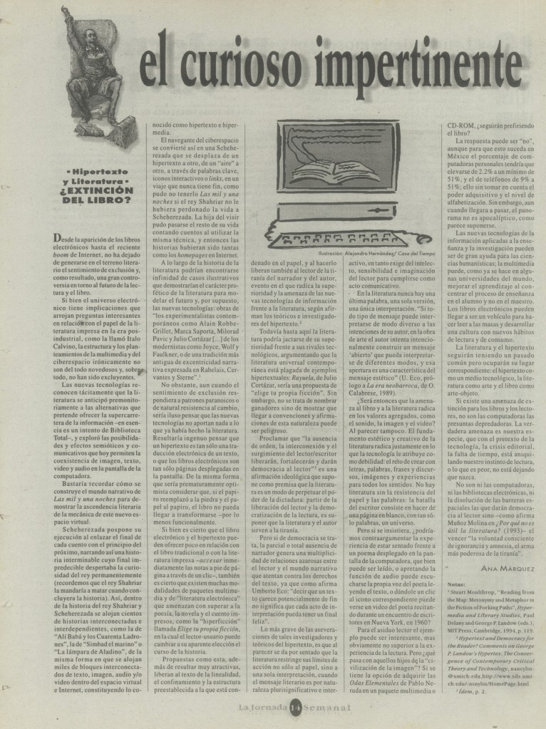 “Blasfemias”, her first poetry dossier, was awarded with a Nuevo Leon’s State honorific mention and her feature, about the controversial disappearance of the printed book in the newborn digital era, won a Journalism National Award of Young Journalism in 1996.